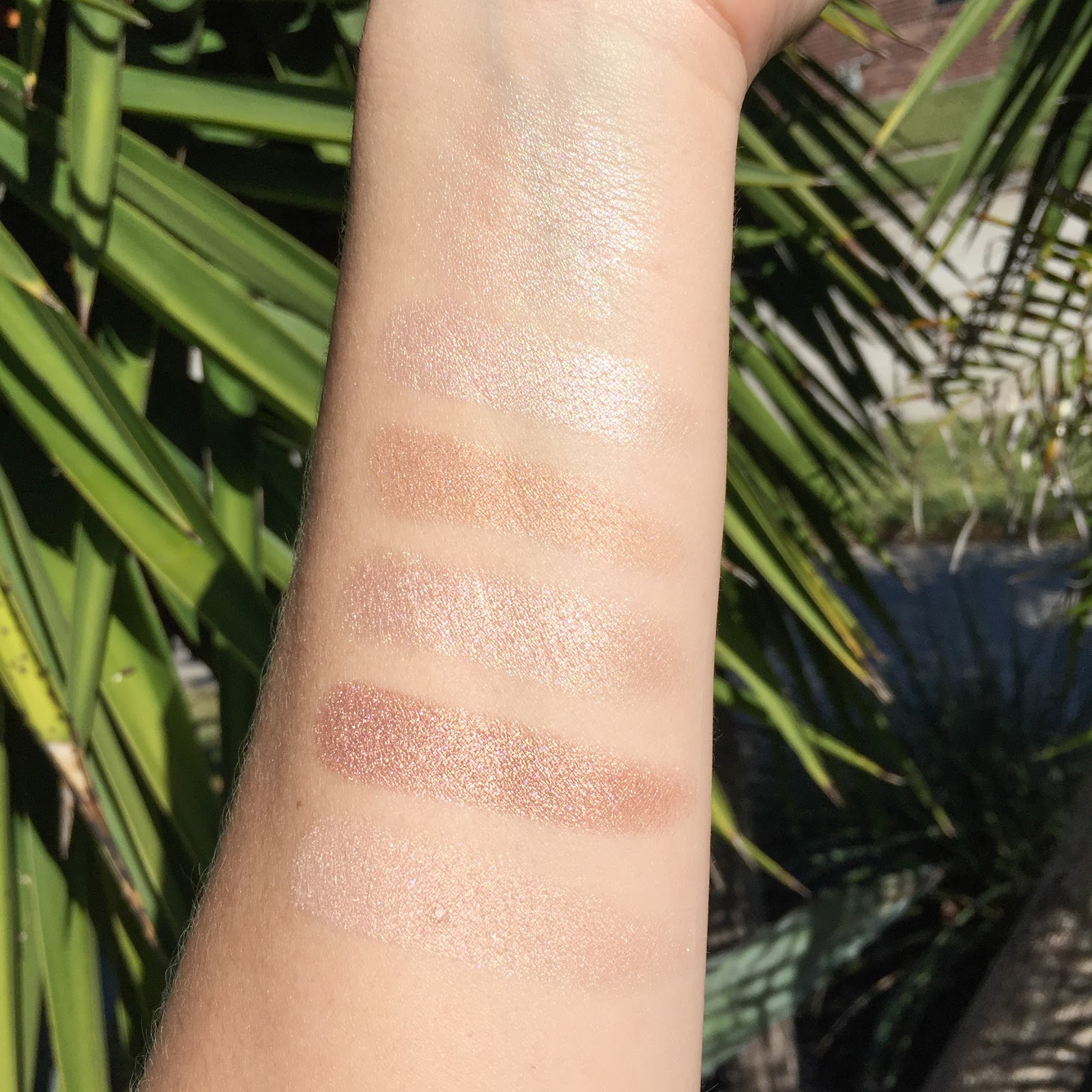 There's no glitter just an intense shimmery almost frosty feel to this highlighter. The texture is also a bit harder. No powdery feel at all. It's very similar to Plisse Lumiere de Chanel. I find Dentelle Precieuse to be softer and less frosty than the other two. You can see Le Signe du Lion Or Rose is a bit lighter actually than Plisse Lumiere de Chanel. The highlighter lasts all day and I have no issues with fading. It's finely milled and as always has that high Chanel quality.